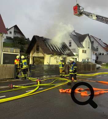 Im weiteren Verlauf wurde das Einsatzstichwort auf Gebäudebrand erhöht und zusätzliche Kräfte nachalarmiert, darunter die Feuerwehr Weissach im Tal, die Drehleiter der Feuerwehr Backnang sowie die Führungsgruppe Weissacher Tal. Über die Drehleiter konnte auch ein Brand im Spitzboden abgelöscht werden.